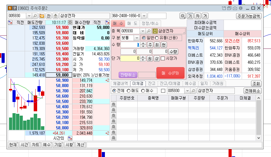 주식 매수, 매도를 가능하게 해 주는 주문 메뉴도 한번 들어가봤어요. 진짜 살 것도 아니고 그냥 들어가본건데도 엄청 쫄리더라구요. ㅎㅎ 시시각각 변하는 가격, 물밀듯 들어오는 새로운 정보... 정말 잘 모르고 투자를 감행했다가는 정신을 못차릴것 같았어요. 아무런 준비도 없이 주식을 하는건 정말 위험해 보였습니다. 둘러보면서 다시금 되새기게 되네요. 많이 공부해야겠다는 사실을요. ㅎㅎ