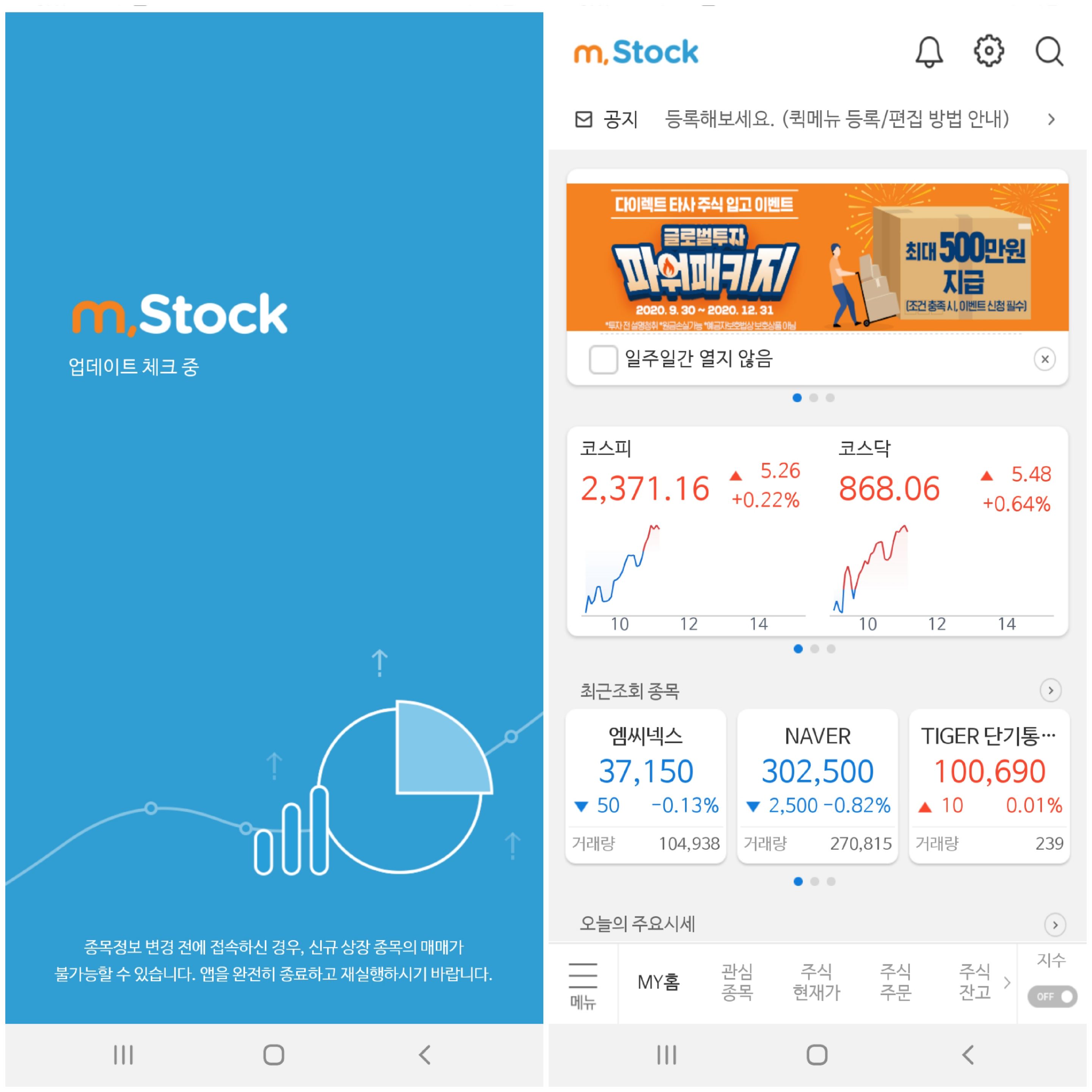 계좌가 만들어지고 그 안에 투자 자금을 넣어두시면 언제든 주식투자가 가능한 상태가 되시는데요. m.Stock 이라는 전용 어플리케이션을 통해서 모바일로도 주식 거래가 가능한 시스템이 있더라구요. 일반 은행 어플리케이션이랑 비슷해서 사용하시다 보면 금망 익숙해질것 같았습니다.