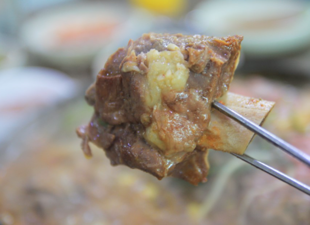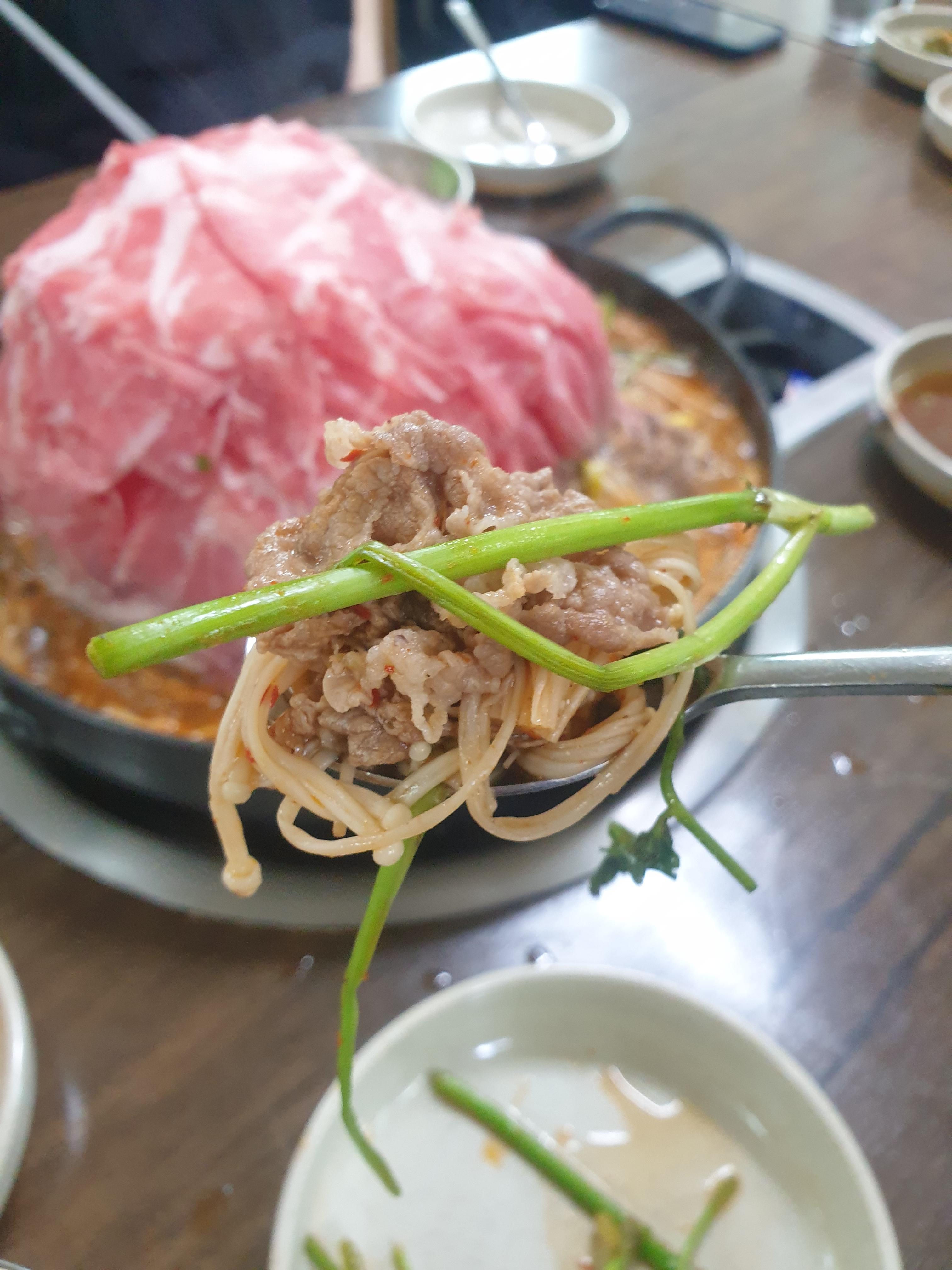 처음에는 샤브샤브 느낌으로 고기를 국물에 담궈서 살짝 익혀서 채소들과 함께 먹구요. 나중에는 갈비를 뜯는 재미까지 주는 메뉴였어요. 무엇보다 일품이었던 것은 바로 국물맛! 이건 도저히 소주를 먹지 않고는 못 배길만큼 엄청 시원하고 개운한 맛이었어요.