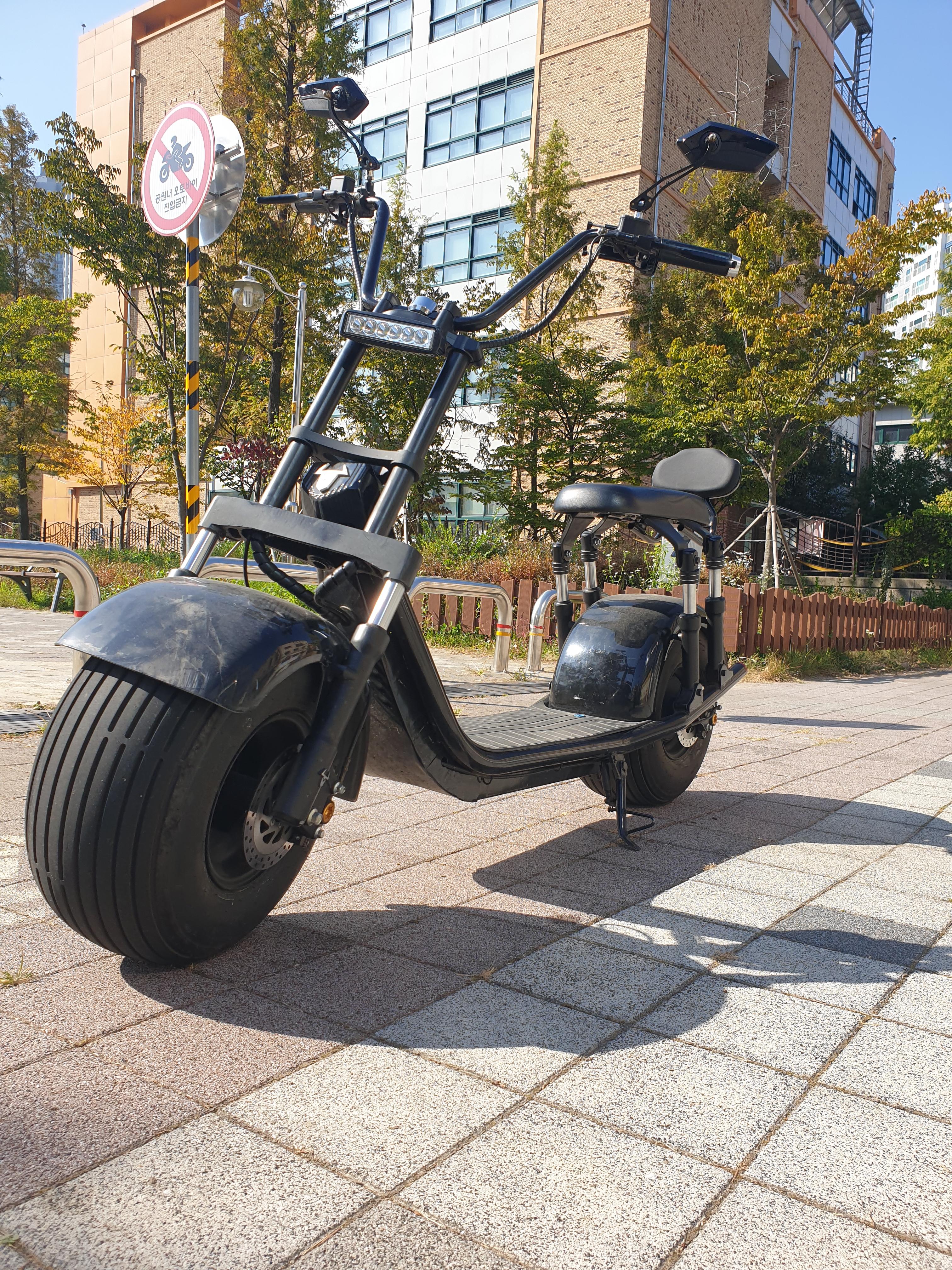 그래서 저도 한번 구매를 해 보았습니다. 새 제품을 사기에는 금전적 부담이 있어서 중고로 구매를 하게 되었어요. 바로 할리스타일 전동 스쿠터, Xpro 입니다. 많이들 아시는 할리데이비슨이라는 오토바이를 연상케 하는 외관을 가진 전동스쿠터 입니다. 간단한 스펙 먼저 소개해드릴께요. 2000W 모터를 사용하구요. 배터리는 60V 21.8ah를 사용하는 제품입니다. 제품 상세설명 기준으로 최대속도 60km/h, 최대 주행거리 80km 라고 표시 되어 있습니다. 이 부분은 실제로 타보면서 테스트 해봐야 할 것 같네요.