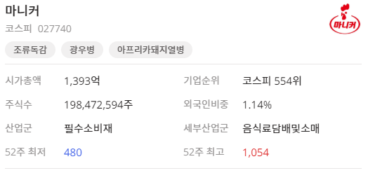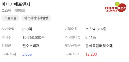 마니커에프앤지는 육가공 제품을 생산하는 식품 제조 기업으로 조류독감으로 인해 계육의 값이 오르면 대체재로 돈육과 우육의 소비가 늘어날 것으로 기대됨에 따라 테마주로 분류되고 있습니다.